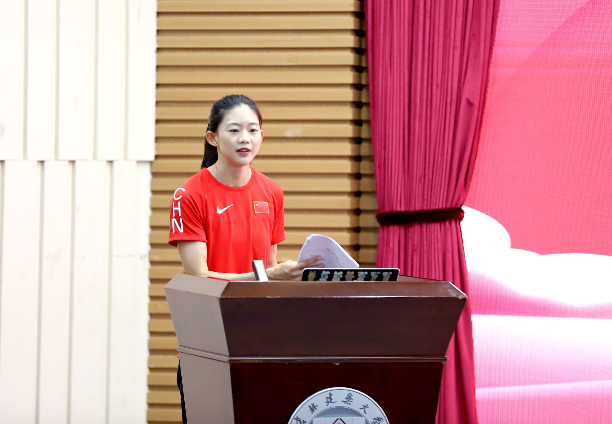 6月27日,体育部青年教师孔玲瑶受邀参加学校关工委举办的“为人梯 育栋梁”2025星之光报告会。孔玲瑶讲述了从本校理工科本科生到硕士研究生,又成为学校体育教师并作为中国国家田径队运动员为国争光的奋斗历程。在报告中,她结合自身经历,分享了如何在校园与赛场之间找到平衡——既在竞技赛场上不断突破自我、屡创佳绩,又在课堂上把体育精神与专业知识传递给学生。她用“青春因奋斗而精彩”的信念,鼓励广大青年教师和学生树立远大理想,脚踏实地拼搏,勇于挑战自我,追求全面发展与高尚品格。报告会现场,孔玲瑶将自己在赛场上获得的奖牌郑重赠予学校,以感恩母校的培养,并希望这份荣誉能成为激励全校师生不断奋进的精神力量。学校党委书记李雁冰,党委副书记张学建,关工委主任、退休校级领导袁敬伟,学校党委常委、宣传部部长张军出席报告会。相关部门、单位负责人,学院关工委主任和秘书长,以及青年教师、学生代表参加活动。报告会由学校关工委秘书长钟迪主持。此次活动是吉林建大关工委继“为人梯 育栋梁”课程思政史话专题座谈会系列活动,以及建设领域全国劳模、两院院士、国家卓越工程师、大国工匠进校园系列报告之后,推出的又一重要育人活动。